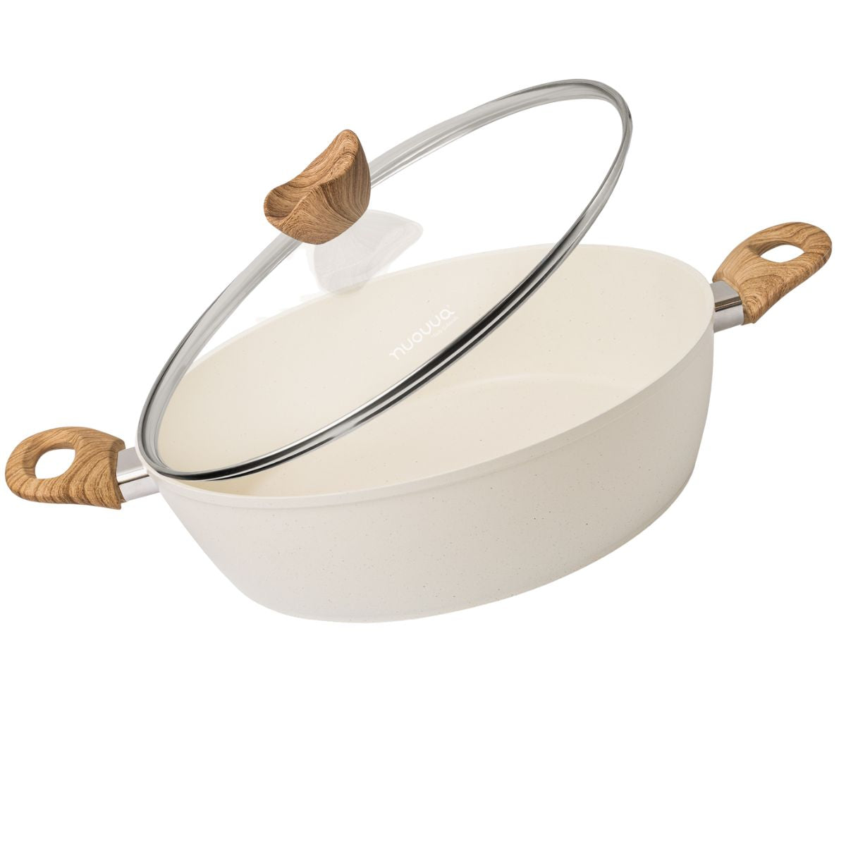 Wide and Shallow Design: Measuring 30cm, the low-profile pot is perfect for quick, flavour-rich dishes like risottos, curries, or sauces. The broad base improves heat contact, while the compact shape makes it easy to handle and store.