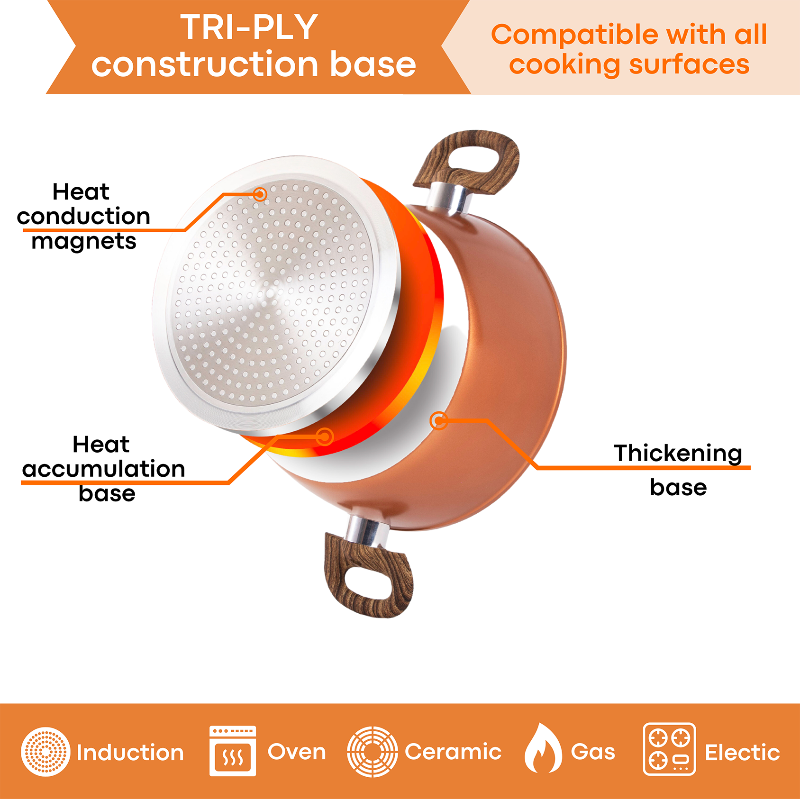 - PREMIUM QUALITY MATERIAL: We have sourced high-quality materials to produce our robust non-stick kitchen cookware set with a sleek Copper outer finish, don’t hesitate to enjoy this strong and long-lasting cooking set in your home!