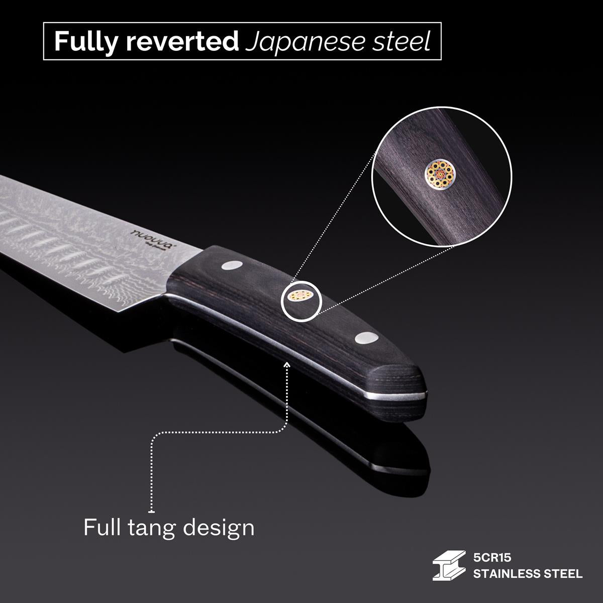 Triple Copper Rivet Construction – Built with full-tang stability and triple copper steel rivets for superior strength and control. This knife is engineered for precision, endurance, and everyday kitchen performance.