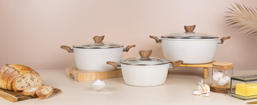 Quick View Choose options Kitchen Cookware Set of 5, 8, 15 & 35pcs with Lids - Multiple Colours£59.99From £44.99 /CreamMarbleCopper