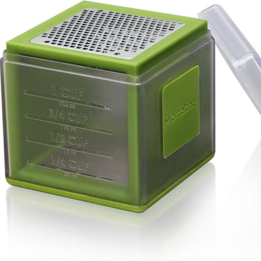 The Microplane mini box cheese grater is the solution! Ideal for small kitchens and limited storage, its compact design features catch-and-measure. Uniquely etched blades offer precise cuts—fine for hard cheeses, ribbon for soft, and coarse for nuts and chocolate. Dishwasher safe for easy clean-up.