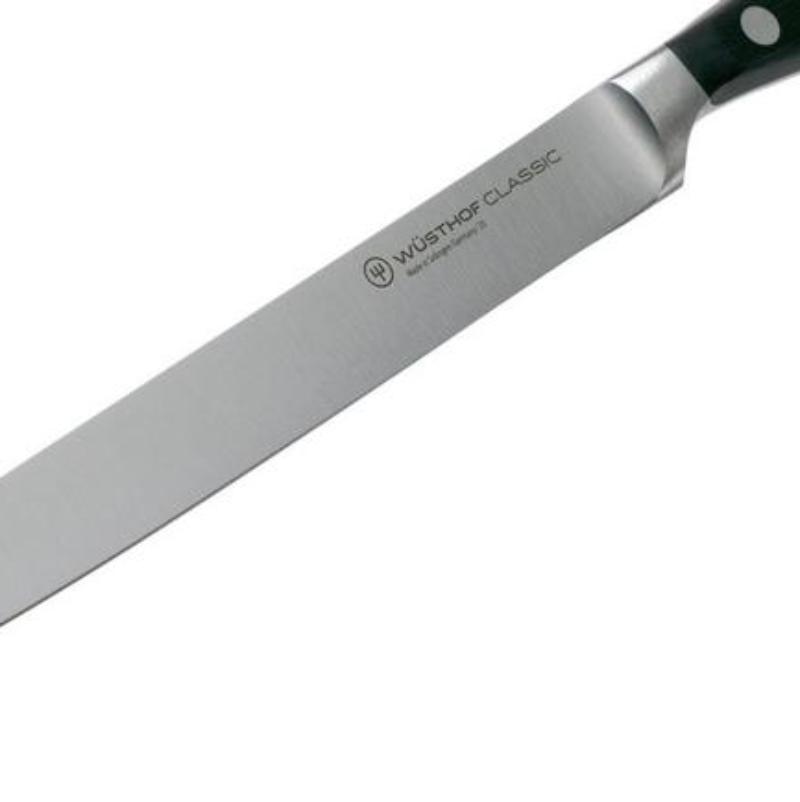 - The ultra-sharp blade is forged from a single piece of flexible Wüsthof steel, hardened to 58° Rockwell and is sanded using a laser-based sharpening process before it gets its final polishing scraper by hand – and thus its long-lasting sharpness.